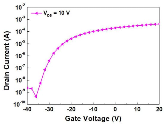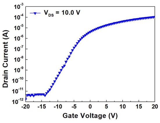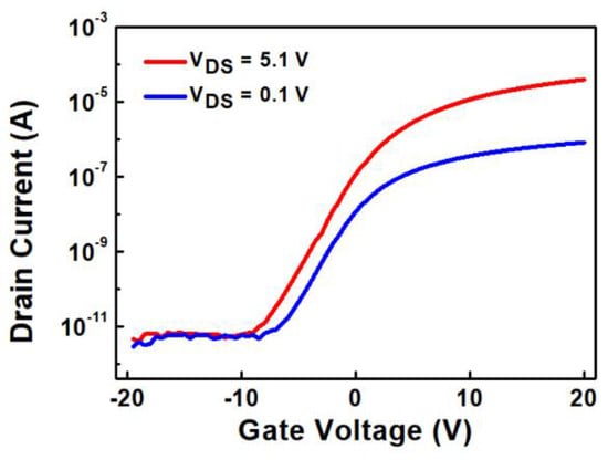 Transfer characteristics of the fabricated a-IGZO TFT.