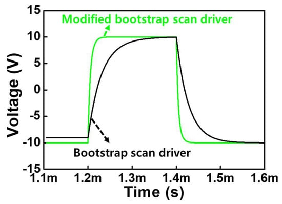 Comparison of driving characteristics of bootstrap scan driver and modified bootstrap scan driver.
