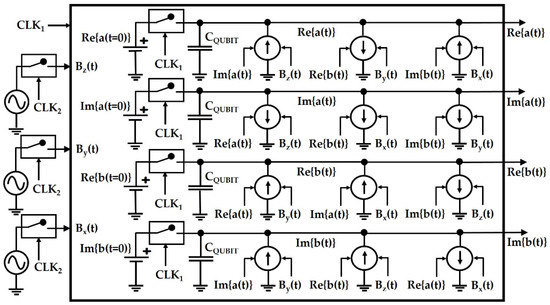 - Blokhina, E.; Sokolov, A.; Giounanlis, P.; Wu, X.; Bashir, I.; Leipold, D.; Bogdan Staszewski, R.; Brambilla, A.; Bizzarri, F. Towards the Co-Simulation of Charge Qubits: A Methodology Grounding on an Equivalent Circuit Representation. IEEE Open J. Circuits Syst. 2021, 2, 548–563. [Google Scholar] [CrossRef]