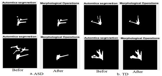 Some images of the dataset before and after the morphological method (a) ASD class, (b) TD class.