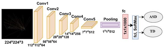 In this section, the ASD dataset was evaluated on two pre-trained models, namely, GoogleNet and ResNet-18, by transfer learning. Networks are trained on millions of images to produce more than a thousand classes and the experience gained is then transferred to perform new tasks on a new dataset. CNNs require a large dataset to obtain high accuracy but medical datasets are not sufficiently large [37]. The CNN networks have proven their ability to overcome these challenges by applying data-augmentation techniques. In the present study, a data-augmentation technique was applied for GoogleNet and ResNet-18 models. Table 5 describes the size of a dataset before and after applying data-augmentation techniques to obtain a balanced dataset and solve the overfitting problem. In this technique, flipping, multi-angle rotation, displacement and shearing were applied to create artificial images for each image. Data increments were applied for classes ASD and TD by seven and ten times for each image, respectively, to balance the dataset during the training and validation phase.