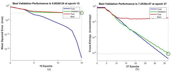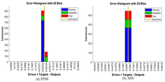 Error histogram of ASD dataset. (a) FFNN algorithm and (b) ANN algorithm.