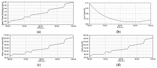 Impact of CPS on (a) stator winding resistance (b) line current (c) stator winding copper losses (d) total losses.