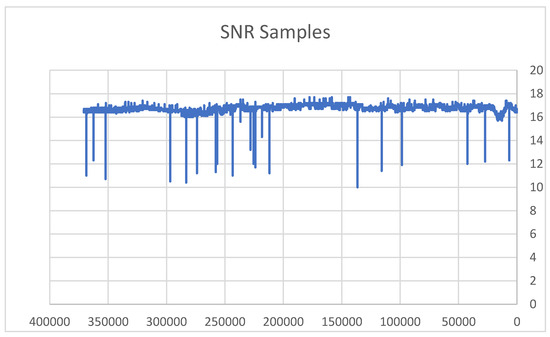 For modeling the satellite and its sensors to evaluate performance in real time, we used the Systems Tool Kit® (STK), used by engineers, mission analysts, and operators. The tool is limited to a 1 s prediction. The experiment setup comprised an LSTM neural network system, a Matlab environment loaded with the code described in Section 3.5, and 98 sample records described in Section 3.5. We built the network using the LSTM method and created a tool that predicts SNR values for a future timeframe. The model succeeded in predicting the SNR sample for the next one second based on the data with a deviation of 1%, which is still reliable. We collected data from satellites, researched and explored optimal ways to build the deep neural network architecture of the LSTM, and chose the parameters which reduced the function loss to a minimum. The LSTM neural network training process receives the 98 training samples and outputs the predicted value for the next timeframe. The method comprises a three-stage process, starting with data collection from the satellite, building, training, and testing the RNN using the LSTM method and then iteratively compiling a prediction of the signal intensity for the next timeframe.