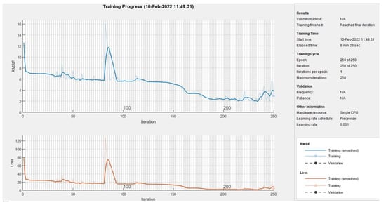 We introduced the LSTM-ML process and compared the expected rain and fog attenuation levels to the accurate attenuation results executed over a broad spectrum of signal strengths, from 2.4 GHz to 72 GHz. The experiment began with training the LSTM system using the 913 sample records collected. Figure 5 depicts the results achieved during the ML training process.