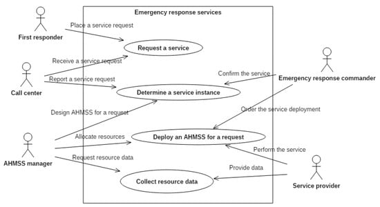 A use-case diagram for an AHMSS in an emergency response situation, reproduced from [6].