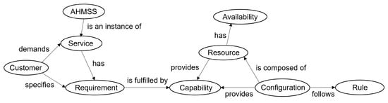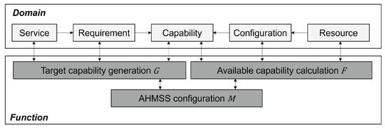 From the domain model, an AHMSS configuration problem can be identified, which determines a configuration following its configuration rules so that the capabilities of the configuration can fulfill the requirements of a service demand. More specifically, each service may task different operations, resulting in different requirements in set . Each resource in set may also have different capabilities in set , which are affected by the conditions of an operational environment in set .