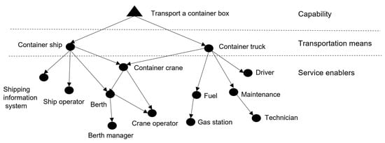 Example dependencies between service elements for container transportation, reproduced from [6].