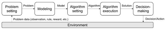 For the problem setting step, AI can automate data-related tasks. The available data for the problem setting are likely large-scale due to a large volume of sensor and monitoring data. Therefore, it is difficult for humans to handle the data properly in limited time. The tasks include handling missing data using approximation or interpolation of the available dataset and integrating multiple data sources into unified and useful datasets. With the dataset prepared, AI can be further used for cognitive supports. Detecting patterns in data and interpreting the patterns are examples of the AI-based cognitive supports.