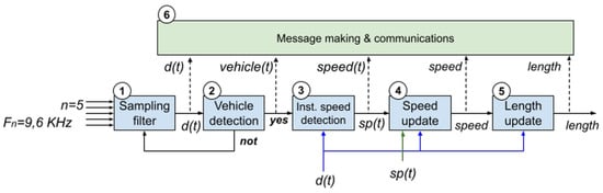 The processes that a module performs to detect and characterise a vehicle are shown in Figure 6. As shown in this figure, a module that acts as a CN can detect a vehicle and determine its speed, as well as the length of it.