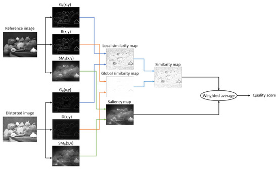 Over the years, many structural features have been utilized or proposed to quantify image degradations. Image gradient, which characterizes image locally, is a very popular tool in the literature for this purpose [6,7,8,9]. Results of previous studies indicate that global contents of a scene are analyzed by the human visual system before the local features [10]. The main contribution of this study is an FR-IQA metric that characterizes the global changes of an image by the Grünwald–Letnikov derivative and the local changes by image gradients. Thus, a combined approach is proposed in this regard. Moreover, visual saliency is also utilized for weighting the changes in the images and emphasizing those image regions which are salient to the human visual system.