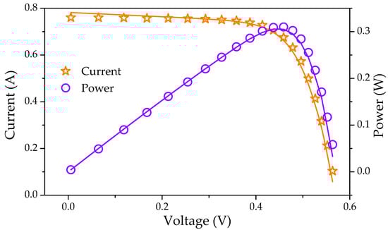 For a single-diode model, five parameters (, , , , ) must be estimated. The values of simulated current and power with their IAE are charted in Table 2. Table 3 shows the values of the STO-optimized parameters and RMSE for comparison. The STO algorithm has the lowest RMSE of 8.6106 × 10−4 when compared to other algorithms. In this case, RMSE values are obtained as an index for evaluating results with previously constructed techniques by the researchers. Figure 3 depicts a redrawn current-voltage (I-V) and power-voltage (P-V) characteristics curve for a single-diode model based on the optimum optimized parameters achieved by executing the STO method. The computed data generated by the STO was found to be very close to the experimental data set across the whole voltage range.