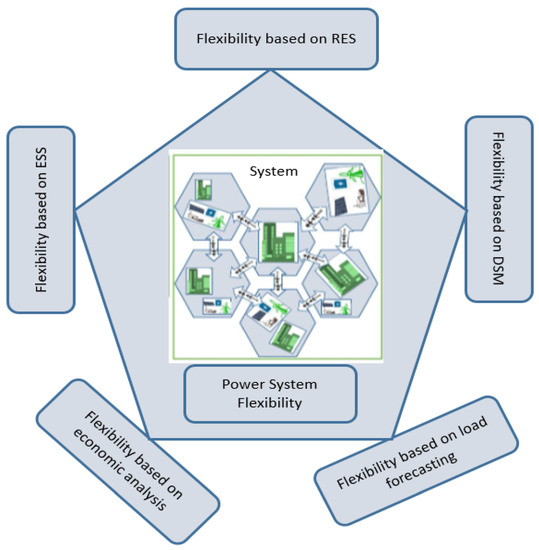 In a bid to solve this problem [46], many other issues ranging from technical and economic problems arise. In this study, we present the classification of flexibility impacts in power systems. We identified and presented some of the studies on flexibility based on five major aspects that affect power system flexibility, as described in Figure 2. Furthermore, we report many studies that have good insights into the various aspects discussed, and then provide a conclusion and recommendations.