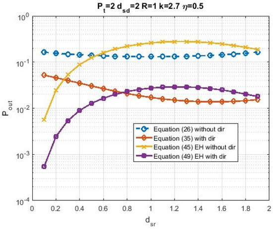 The outage probability with respect to S-R (or S-EHR) distance under optimal .
