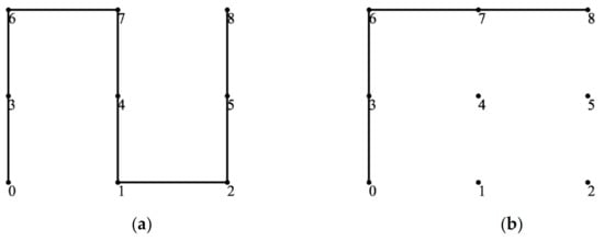 Therefore, this paper focuses on smaller lattice size such as 3 × 3 and 4 × 4, which are simpler to examine while preserving the versatility and intricacy of lattice converters. For a fully connected 3 × 3 lattice, we find 12 paths from node 0 to node 8. Two examples are shown in Figure 6.