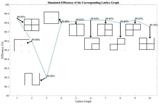Simulated efficiencies of corresponding lattice graphs.