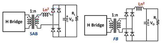 where the subscript “FB” denotes that the quantities correspond to the full-bridge converter (with phase shifted control). Comparing (43) with (55) and (20) with (56), it can be concluded that N and NFB coincide if: