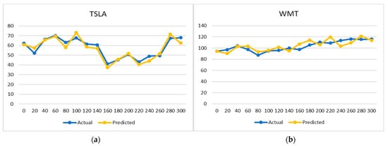 Stock trend prediction for (a) TSLA and (b) WMT.