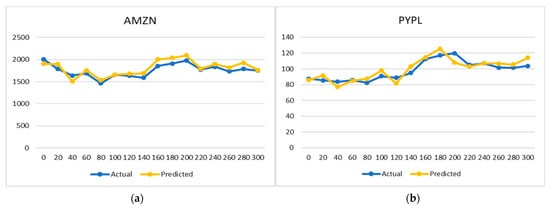 Future Price determination for (a) AMZN and (b) PYPL.
