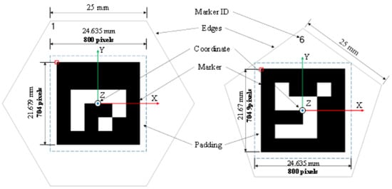 Detail of ArUco marker inside the hexagonal (left) and pentagonal boundary (right).
