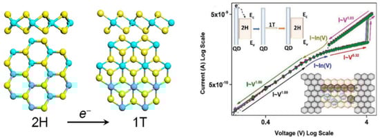 - Fu, X.; Zhang, L.; Cho, H.D.; Kang, T.W.; Fu, D.; Lee, D.; Lee, S.W.; Li, L.; Qi, T.; Chan, A.S.; et al. Molybdenum disulfide nanosheet/quantum dot dynamic memristive structure driven by photoinduced phase transition. Small 2019, 15, e1903809. [Google Scholar] [CrossRef]