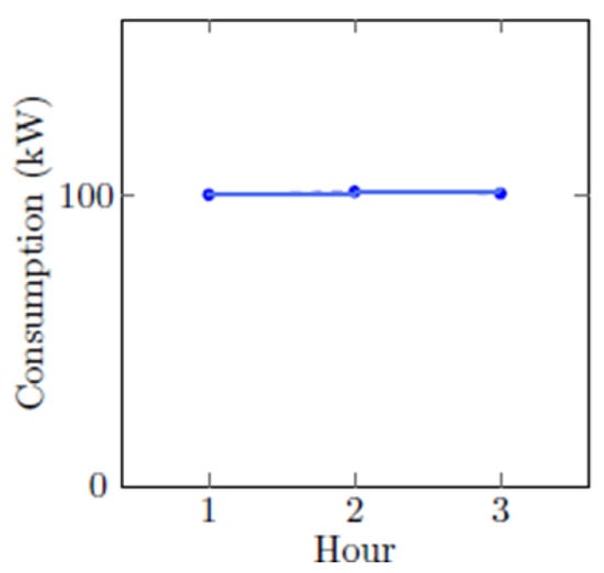 In a 3 h model, a flexible resource has a nominal consumption of 100 kW for the first hour, 105 kW for the second hour, and 103 kW forthe third hour (see Figure 1).