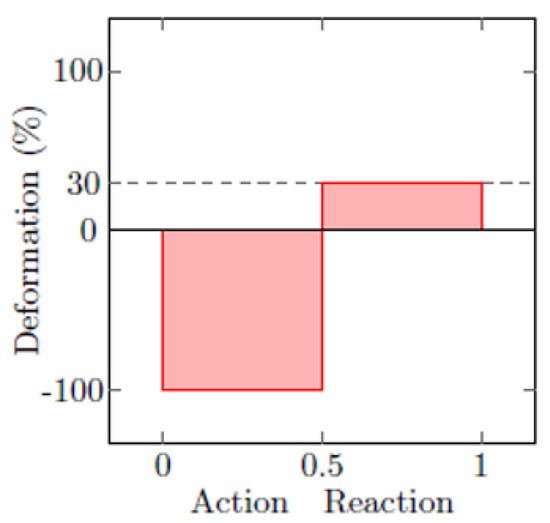 Consider the normalized deformation profile of example 1; Action: (−100%), Reaction: (30%). If we stretch this over five periods, the profile becomes Action: (−100%; −100%, −100%), Reaction: (30%; 30%).