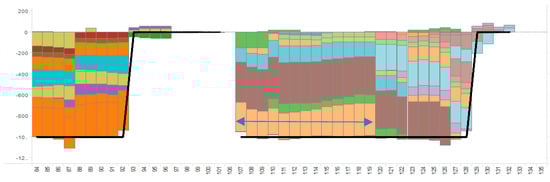 Figure 6 presents an example of a solution found for an instance of the dispatch mode. The X axis represents the time, and the Y axis represents the interrupted volume in kWh. Each sequence of blocks, having the same color in this picture, represents a flexible asset and its deformation, over the time, in terms of interrupted volume.
