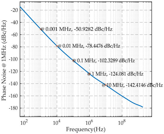 In all cases, there was a similar trend. The lower the bias level code was, the lower the bias voltage level. In all cases, the lower the bias voltage was, the more the phase noise tended to improve. If the bias voltage became too low, the VCO did not operate and turned off. On average, it showed the best phase noise at the 2–3 codes before the turn-off code. For example, in Figure 5, the blue graph was the case of the nn corner, 27 °C, and 0.5 V, and it operated up to code level 7 because VCO turned off at code level 6. In this case, the optimal point showing the best phase noise performance is code level 8 and it can be seen that it is before 2 codes from the OFF point of code level 6. When analyzing the optimal point in this way, each had a different optimal code.