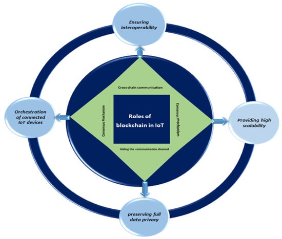 The existing IoT systems focus on unified, brokered communication models that are often referred to as the paradigm of the server-client. Owing to the high service and storage costs for networking facilities, large server farms and centralized clouds, existing IoT technologies are costly. As more vital activities such as human wellbeing and survival start to rely on the IoT, this is particularly important [45]. In fact, IoT services are decentralized, with no single authority. The system may allow for transactions or set unique rules for the approval of transactions. Since all of the network nodes want to approve transactions by consensus, there is a huge amount of confidence involved. The blockchain’s decentralized, independent, and trustless characteristics make it an integral component for IoT application solutions. Without the need for a centralized broker, the service provided by the blockchain would allow truly independent smart devices to share data or even perform financial transactions. This form of sovereignty is possible because, without depending on a single authority, the peers in the blockchain-based network can validate the legitimacy of transactions. One of the most important services offered by blockchain is the ability to keep a properly unauthorized, trustworthy database of all of the transactions in a network. These facilities are relevant without having to rely on a centralized approach that oversees many IoT application compliance and regulatory requirements [46].
