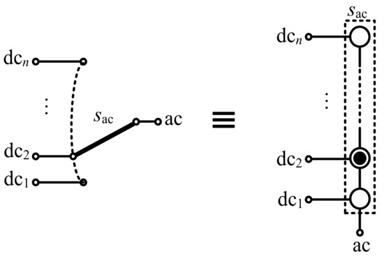 Pure multilevel NPC converters are built with a combination of converter legs, each functionally equivalent to a single-pole multiple-throw switch, as depicted in Figure 2. At every point in time, the leg AC terminal can be electrically connected to one of the DC-link points: to any of the two outer DC-link points dc1 and dcn, or to any of the n − 2 inner neutral points dc2 to dcn−1.
