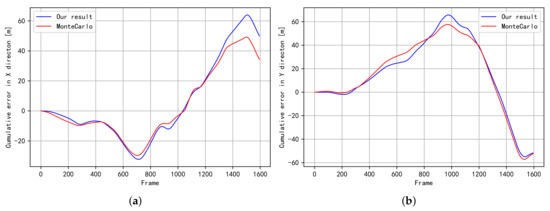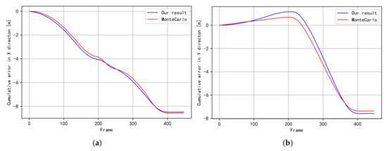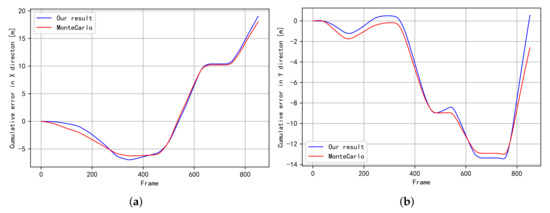 The expectation of cumulative error for trajectory (Figure 2a). (a) The expectation of cumulative error in the X direction; (b) The expectation of cumulative error in the Y direction.