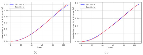 The expectation of cumulative error for trajectory (Figure 2c). (a) The expectation of cumulative error in the X direction; (b) The expectation of cumulative error in the Y direction.