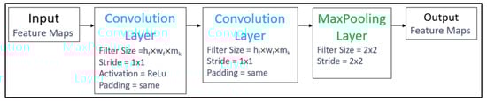 Some important convolutional neural networks (CNNs) and extensions were provided for imaging recognition. In 1998, LeNet [] was proposed with limited functions due to the computation ability of hardware at that time. These limits were gradually reduced along with the development of faster and more powerful GPUs. On the other hand, large labeled datasets such as ImageNet enabled CNNs to learn more complex and practical functions. Following LeNet, deeper and parallel convolution layers in CNNs were used in both AlexNet [] and VGG []. These better structures improved recognition accuracy greatly. The number of network layers in CNNs was further increased in VGG16, in which 13 convolutional layers and 3 fully connected layers were used to make a 16-layer CNN. The features were extracted mainly by three 3 × 3 convolution layers and one 2 × 2 max-pooling layer.