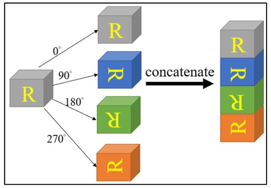 In training-set preprocessing, since our proposed model is designed to handle rotational invariance, there is no need to augment the original training set with different angles. For other compared models, we preprocess the training sets in two ways: fixed-angle rotation and random-angle rotation. By fixed-angle rotation, each image is rotated with four angles: 0, 90, 180, and 270 degrees. Thus, the augmented training set is four times the size of the original. Figure 11 shows the concept of the fixed-angle rotation.