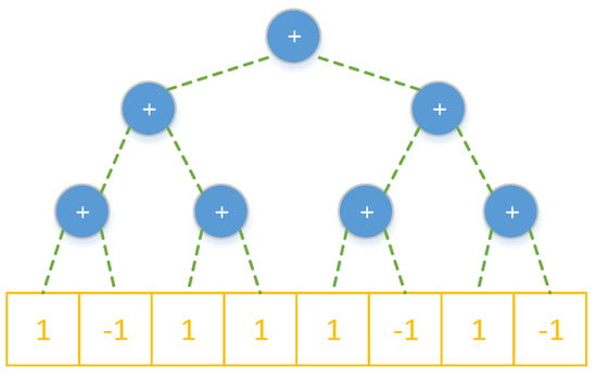 The Binarized Neural Network (BNN) refers to the Convolutional Neural Network (CNN) which are made up of only bipolar data for weights and activation. When compared to a real-value CNN, it substitutes and Popcount for multiplication and accumulation within convolution operations, which economizes on memory and computing units and greatly facilitates the deployment of the model on resource-constrained devices []. Nonetheless, the accuracy of BNN model has always been substantially inferior to a real-value model with the same topology due to the limited information entropy.