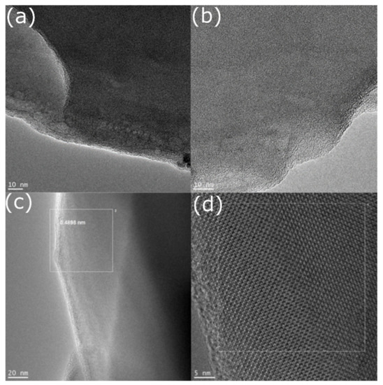 HRTEM images were obtained on a JEM-2200FS transmission electron microscope (JEOL, Japan) with a spherical aberration corrector at an accelerating voltage of 200 kV. Initially, a sample in the form of a finely dispersed powder was deposited on the grid using an ultrasonic disperser.