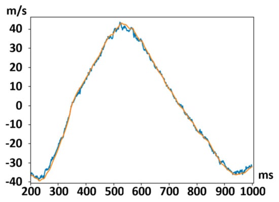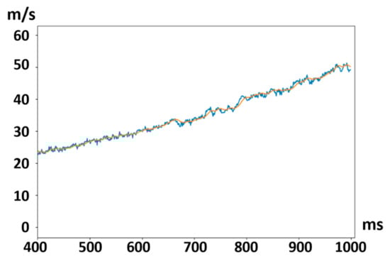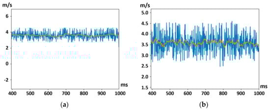 Figure 17 shows the result of four layers of EKF with actually swinging at degrees. The input signal is blue, and the output signal is orange. The output image is 38 fps. The average power consumption of the ROS hardware system is 7.122 W.