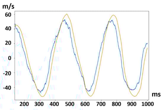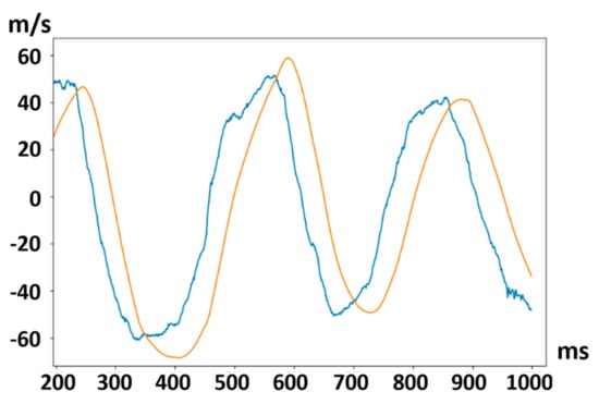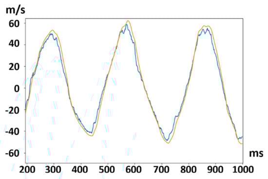 Figure 7 shows the result with the analog input of the sine wave and with the EKF of three layers. The input signal source is marked by a blue line, and the output signal with filtering through EKF is as an orange line. The frame rate of the output image is 41 fps. The average power consumption of the body system is 7.006 W.