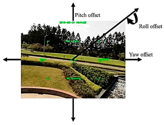 Globally, in response to the technological advancement of drone micro-electromechanical systems, drone costs have fallen sharply. Applications of optoelectronic payloads and stabilizers become a standard component. Optoelectronic payloads are detection devices installed on servo-stabilized systems on moving carriers such as drones and track ground or air targets based on boresight stabilization technology. With the varying attitude angle of the carrier, the gyroscope’s photoelectric payload can be moved without interference from the carrier, stabilizing the picture and ensuring the detection equipment on the photoelectric payload. It can be found that optoelectronic payloads for drones have the advantage of key components in the drone market. Therefore, from 2016 to 2018, many solutions were obtained due to the microchip processing speed and data amount increased. It causes many different applications of optoelectronic payloads used in various military and civilian fields. As the speed of the processor increases and the amount of data processing is larger. The ability to perform calculations on images and signals simultaneously in one processor emerges is required. The traditional advantages of mechanical processing are gradually reduced, and instead, the image stabilization processing is performed by the image and the mechanical gimbal frame at the same time. Image processing research is the basis of this method. It can greatly increase the processing efficiency and reduce the use of the hardware gimbal frame. It further reduces the weight and resource consumption of image stabilization and can further utilize one processor to complete multiple tasks in the traditional method. The performance evaluation index of the photoelectric payload is the reliability of the data captured by the optical sensor. Therefore, the reliability of the data captured by the sensor is a key issue. Ref. [1] proposed an adaptive unscented Kalman filter for target tracking with time-varying noise covariance based on multi-sensor information fusion. An innovative optimal information fusion methodology is proposed based on adaptive and robust unscented Kalman filter (UKF) for multi-sensor nonlinear stochastic systems. Based on the linear minimum variance criterion, this multi-sensor information fusion method has a two-layer architecture: at the first layer, a new adaptive UKF scheme for the time-varying noise covariance was developed and served as a local filter to improve the adaptability together with the estimated measurement noise covariance by applying the redundant measurement noise covariance estimation, which is isolated from the state estimation; the second layer is the fusion structure to calculate the optimal matrix weights and gives the final optimal state estimations. Based on the hypothesis testing theory with the Mahalanobis distance, the new adaptive UKF scheme utilizes both the innovation and the residual sequences to adapt the process noise covariance timely. The results of the target tracking simulations indicate that the proposed method is effective under the condition of time-varying process-error and measurement noise covariance. Ref. [2] proposed the design of a stability control system for pan, tilt, and roll. The traditional gyro stabilization control method uses the angle information obtained by the gyro to extend the Kalman Filter and then corrects the position of the three-degree-of-freedom velocity integration in the original space [3]. The value is provided to calculate the parameters of the controller, and the angle information can be converted into a unit pulse (Pulse Width Modulation, PWM) signal to the MOSFET to generate a higher voltage to the motor. Ref. [4] uses a fixed-wing UAV to implement an automatic tracking system design. Reference [5] analyzed the various error sources of the three-axis gimbal, used the accuracy of the gyro error model to calibrate the accuracy, and established the photoelectric payload and the gyro model error equation. However, the actual internal error of the controller includes: gyro accuracy error, acceleration caused by gyro angle error, motor response time delay, payload vibration, and image scanning frequency resonance [6,7]; the above four items cause the final imaging image to be unclear or fuzzy. Key factors proposed a fuzzy PID control algorithm to control the operational stability of the photoelectric payload. However, updating the accuracy of the gyroscope causes a serious burden on the private sector. Acceleration caused by the gyro angle error can be corrected in real-time by setting the spatial position of one axis in the middle of the three-axis degrees of freedom as a constant. References [3,8] reposed a PTZ controller design method for UAV’s own motion compensation. By analyzing the effects of translation and rotation movement of UAV on the imaging of the target in the image plane, the relationship between the angular velocity of the body and the angular velocity of the PTZ attitude. In order to compensate for the change in the camera’s boresight caused by the UAV’s own motion, the position of the target in the image plane is used to correct the camera tracking error. In this paper, applied to the electro-optical infrared payload system’s vision offset function, the multiple layer Kalman Filter characteristic [9] was used to analyze the filter inertial measurement unit and design a trigger to set up the layer number of Kalman Filter [10]. This function can decrease the electro-optical infrared payload system’s number of stabilized motors, the weight of the device, central processing unit resource, and power. In this research, an illustrated example of a three-axis, three-gimbal system was analyzed by mathematical and simulation inertial measurement unit vibration. Three-axis degrees of freedom vector and gimbal motion data obtained by Kalman filter were provided to the graphics processing unit for offsetting each frame [1