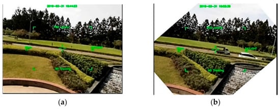 The angle of view of the roll effect when the drone is placed horizontally is shown in Figure 13a, and the angle of view of the payload tilted by 45 degrees is shown in Figure 13b. The image can be compensated by the gyroscope to achieve the effect of non-mechanical stabilization.
