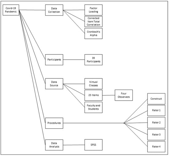 Logistic regression analysis was utilized to model the relationship between faculty engagement and students’ engagement. A total of four models were specified and performed. The dependent variables were all coded into 0 (absence of student engagement) and 1 (presence of students engagement). Each model utilized a different dependent variable corresponding to the three student engagement dimensions, and their summated scale is referred to as global engagement. The independent variables for the four models were all the same: age, gender, whether the instructor was educated in the West or not, the course load per instructor, years of experience, instructors’ emotional instruction use, instructors’ use of exemplary performance traits, instructors’ utilization of community building strategies and instructors’ deployment of storytelling while teaching. Odds ratios were calculated per independent variable to discern the explanatory power of each variable on students’ engagement outcomes. Figure 1 shows the method of the research.