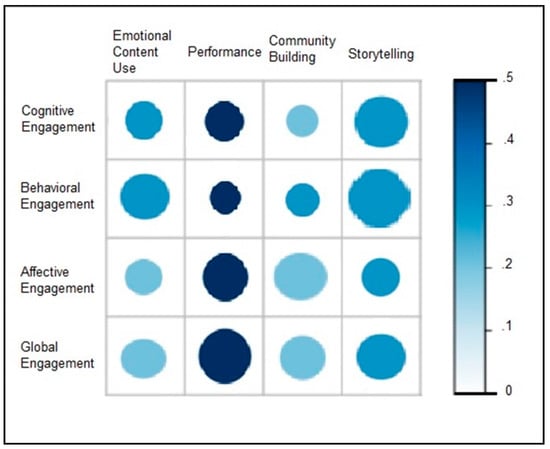 Table 7 and Figure 3 show the bivariate correlations between measures of faculty engagement and student engagement. Performance is the strongest covariate for all students. engagement measures compared to other faculty engagement variables. Storytelling is the second-best predictor of student engagement. Community-building strategies and emotional content/instruction use possess similar low to moderate effects on students’ engagement. Notwithstanding the different magnitudes of associations, all faculty engagement measures positively increase student engagement across all its measures in non-negligible terms.