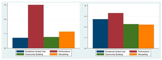 Table 6 displays the means of the four faculty engagement practices by students’ engagement measures. For faculty who were deemed to have cognitively, affectively and behaviorally engaged students, they exhibited higher means of emotional content/instruction use, performance abilities, community building strategies utilization and digital storytelling practice. Performance seems to generate higher means of engagement across all measures compared to emotional content/instruction use, community building practices and digital storytelling utilization. Means differences between faculty who generated engaged students and those who did not were large and significant.