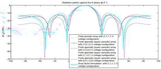Therefore, to study the spatial electromagnetic behavior of periodic antenna arrays (as explained in the previous section in Equation (5)), another way to proceed is based on the superposition of Floquet states (superposition theorem) in a finite or infinite periodic array: