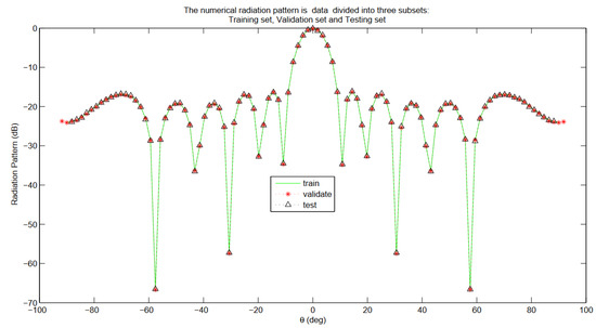 Thus, the numerical electromagnetic radiation pattern of the whole coupled almost periodic array can be presented as database content to build a feed-forward neural network training with supervised learning that approximates the following array pattern’s function [14,45,46].