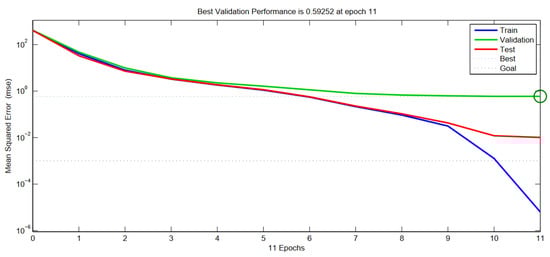 In general, three different types of dataset (input) are employed, known as the training set, validation set, and test set. The training set is a set of values that hold information about the target function for training the network. The validation set is assigned to the early stopping technique. During the training phase, the validation error is monitored to prevent the network from overfitting the training data. Normally, the test set is just used to assess the performance of the network afterward. Ordinarily, 60% of the data are used for training the network and the remaining 40% are used equally for validating and testing the network on unlearned inputs [13,45]. Specifically, MATLAB (commonly used) randomly divides the input vectors and target vectors into three known sets.
