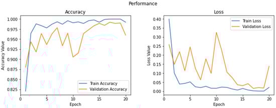 On the basis of the analysis of this work, it can be concluded that the hybrid classical–quantum transfer learning method, particularly the classical–quantum implementation in the form of a dressed quantum circuit, improved classification accuracy. Therefore, these experimental result shows that the hybrid classical–quantum neural network performed better than the classical neural network in terms of accuracy, and provided better results.
