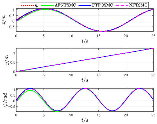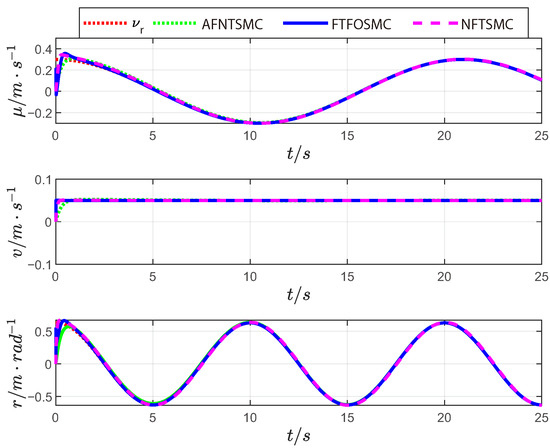 - To solve the USV trajectory tracking problem, a novel fixed-time fractional-order sliding mode control (FTFOSMC) strategy is proposed and applied. Compared with the AFNTSMC and NFTSMC control strategies, it reduces the number of control parameters and guarantees accurate trajectory tracking control.
