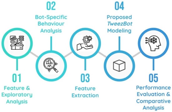 This section illustrates our proposed bot detection framework, termed as TweezBot, which is a multi-layer condition-based model designed exhibiting an AI-driven initiative. Our model begins with feature selection based on thorough analytics for identifying the profiles that are likely to be bots. This is followed with the model building and validation with several performance evaluation parameters and existing counterpart techniques. The infographic in Figure 1 highlights the flow diagram to illustrate the procedure of our proposed framework.